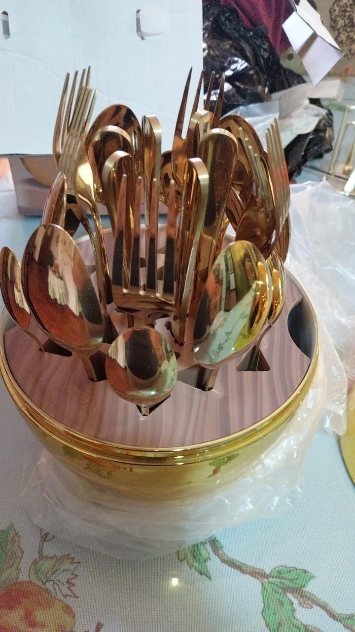 JUEGO DE CUBIERTOS 24PCS ACERO INOXIDABLE GOLD ESTUCHE HUEVO